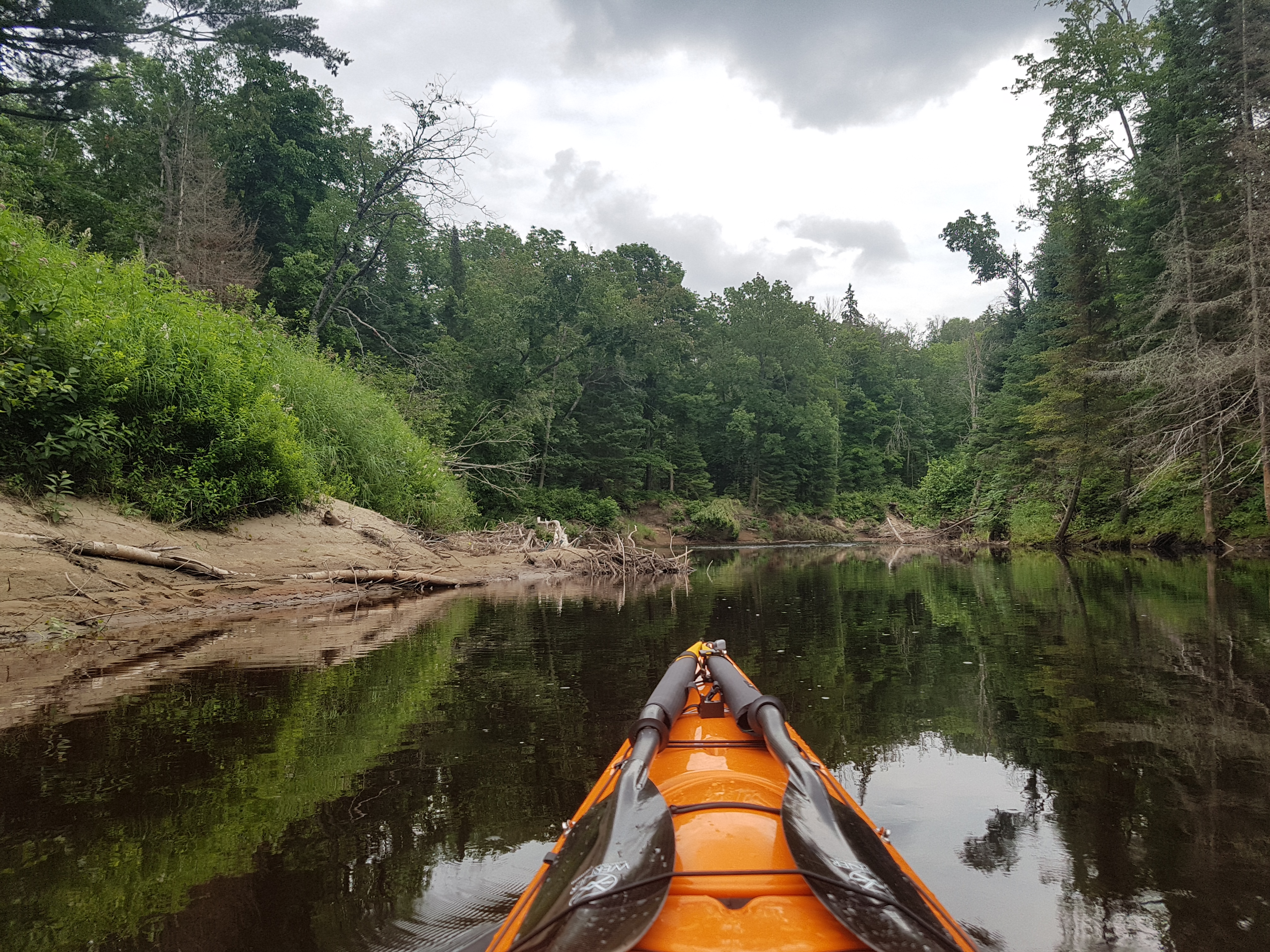 Around every bend, another giant sand bank. Towering pine. That black-tea water. Bird calls and moving current. The route is popular — lots of friendly paddlers to trade stories with — but never in a way that takes away from the wilderness feeling.
