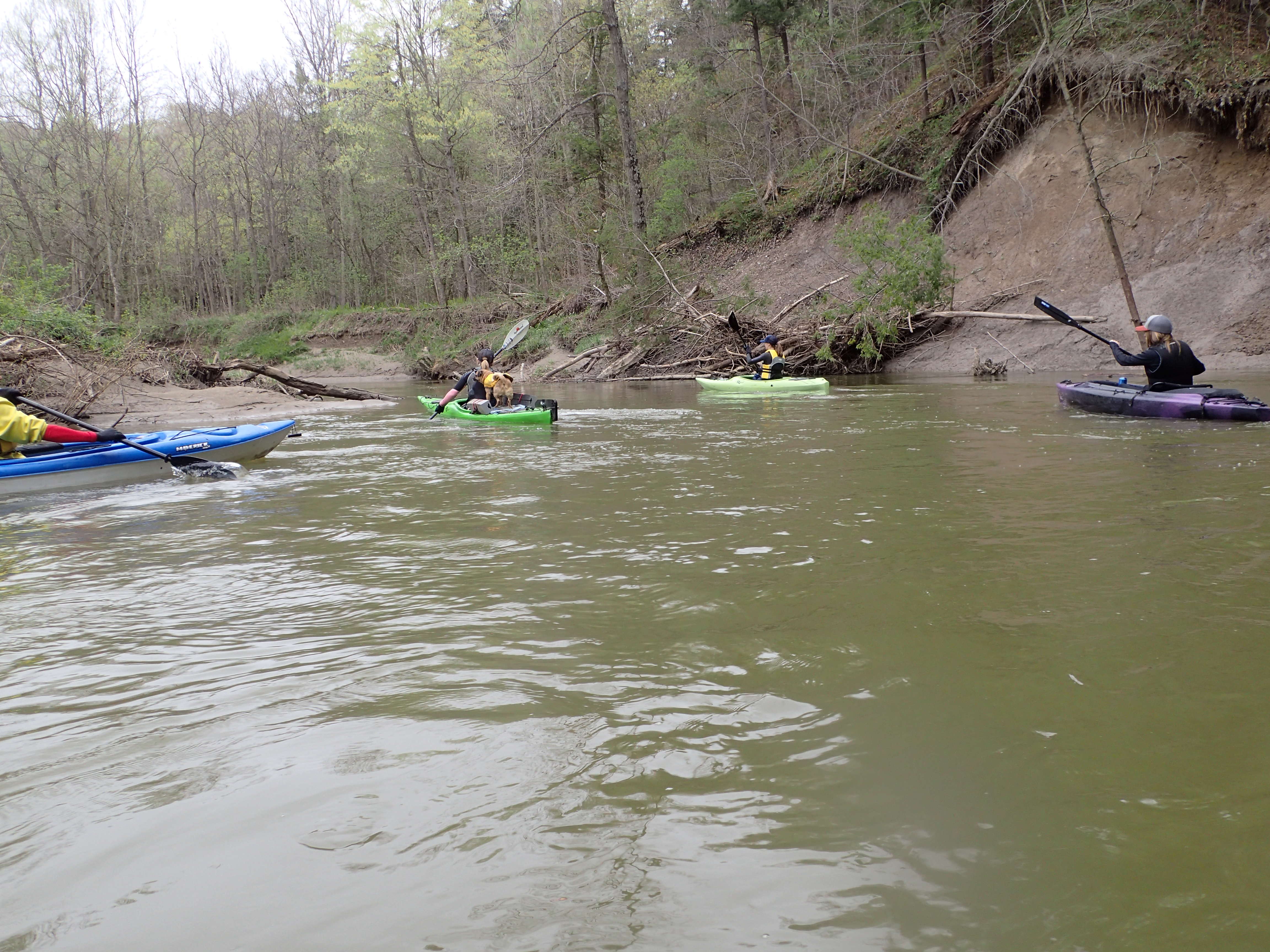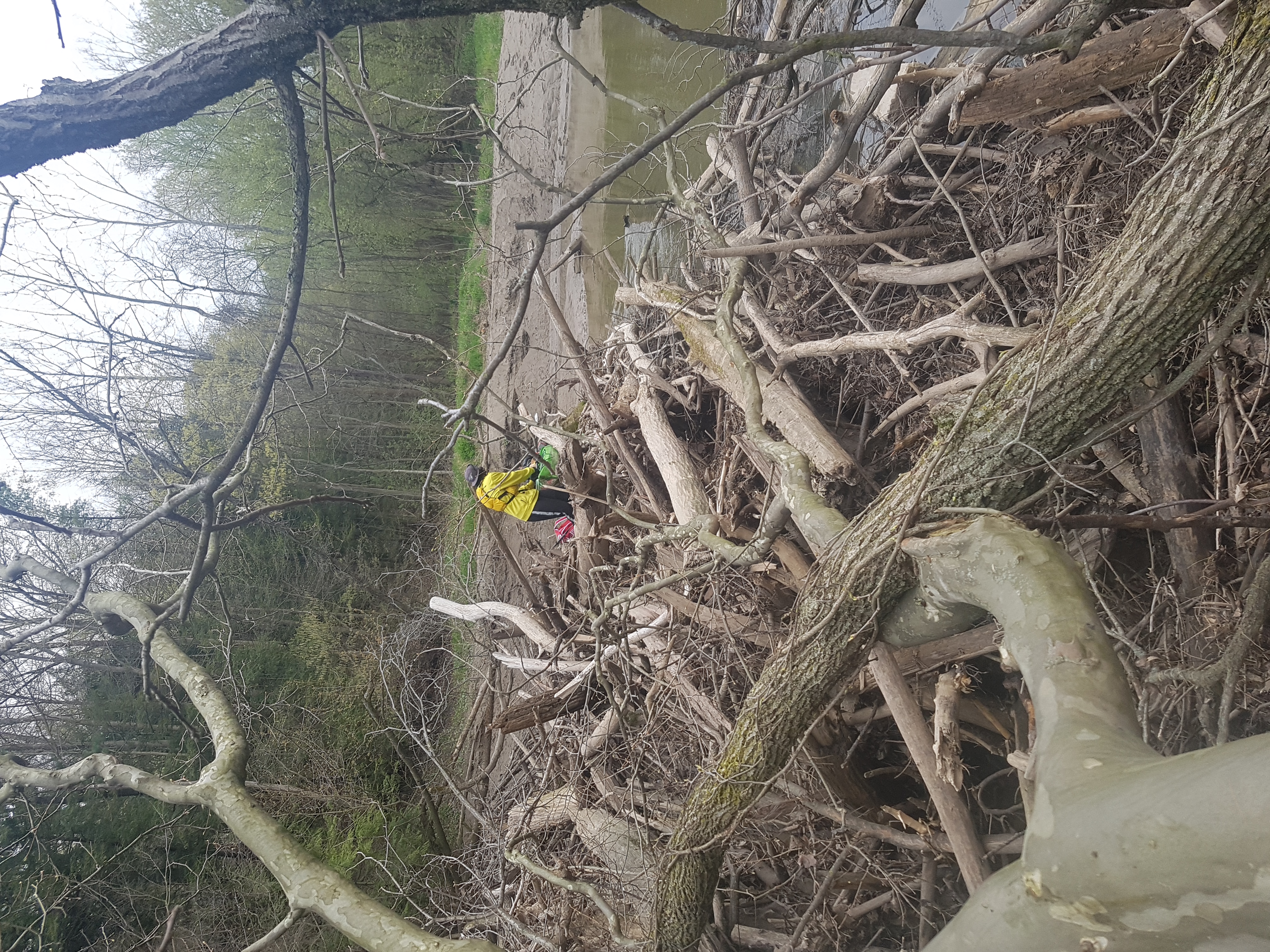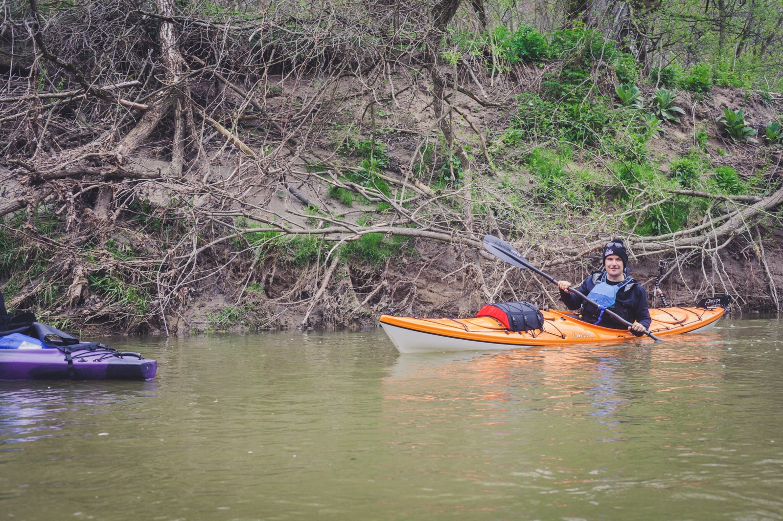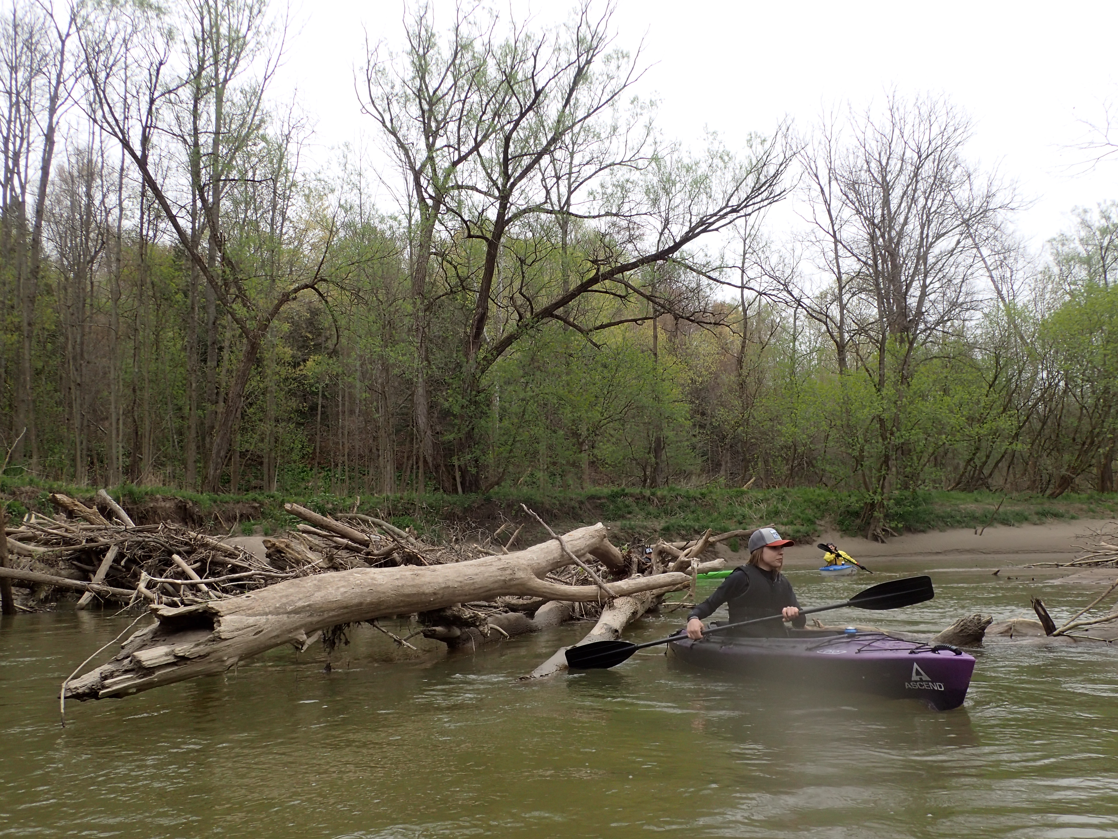 At one point we met a log jam the size of a building and had to climb the whole thing with boats in hand. Classic spring paddling.