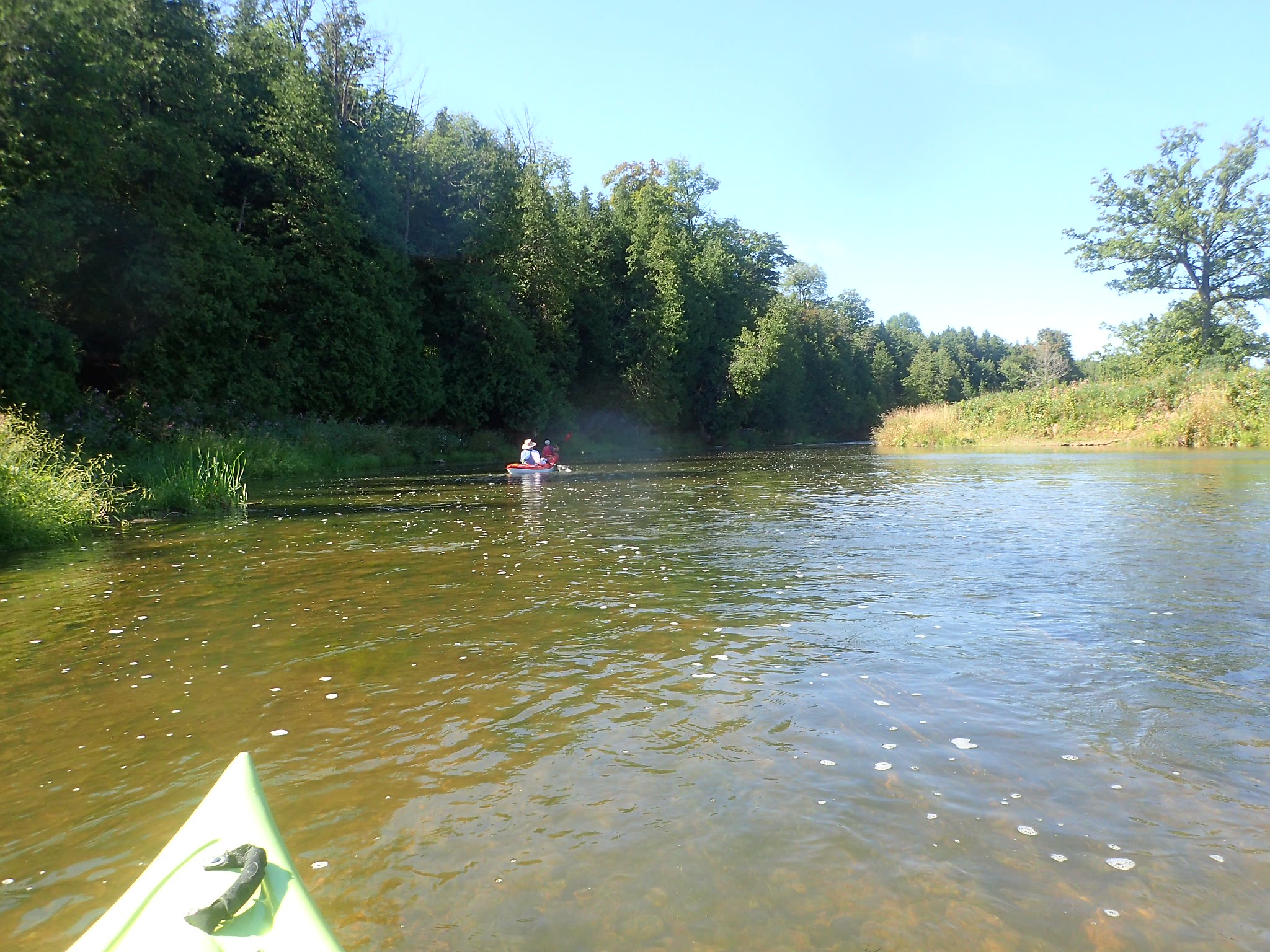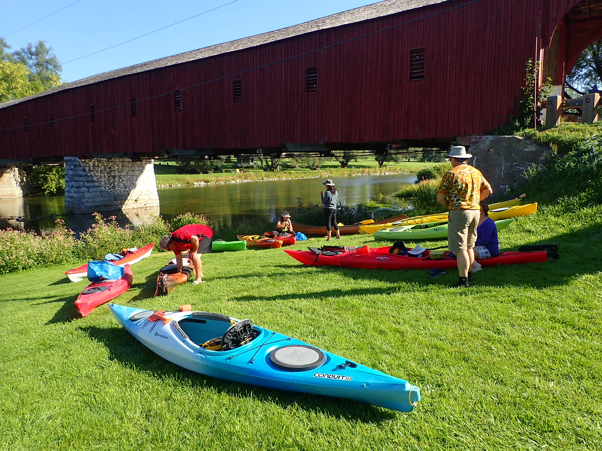 Downriver takeouts include Kaufman Flats (approximately 3 hours) and Moyers Landing (around 6 hours). There are other access points along the way as well.